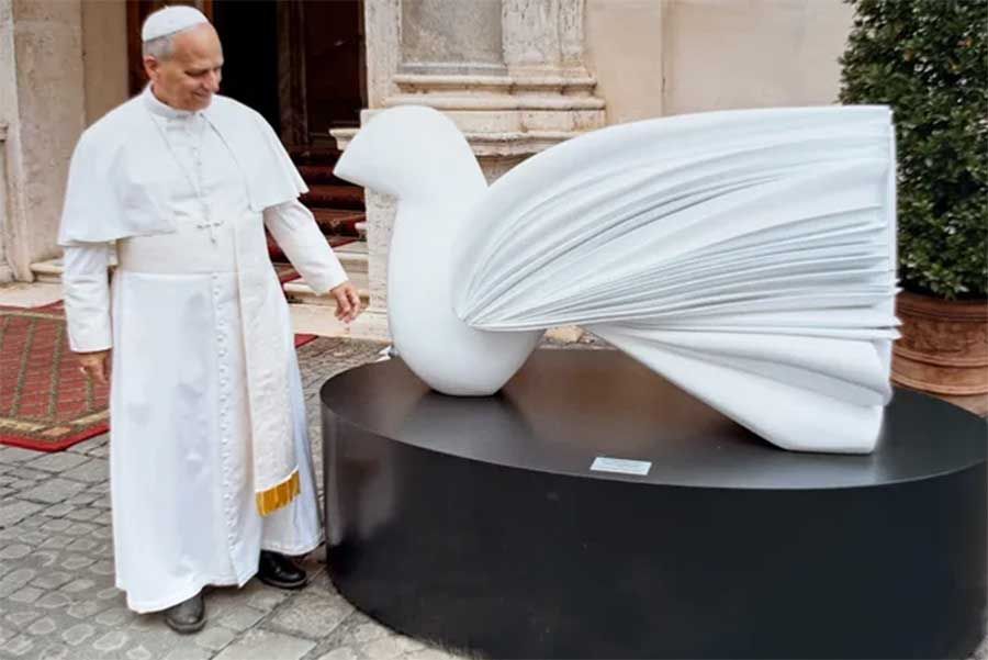 La delegación uruguaya entregó al Pontífice la escultura Paloma de la Paz, del artista uruguayo Pablo Atchugarry. La pieza se exhibe actualmente en un patio interior del Vaticano.
