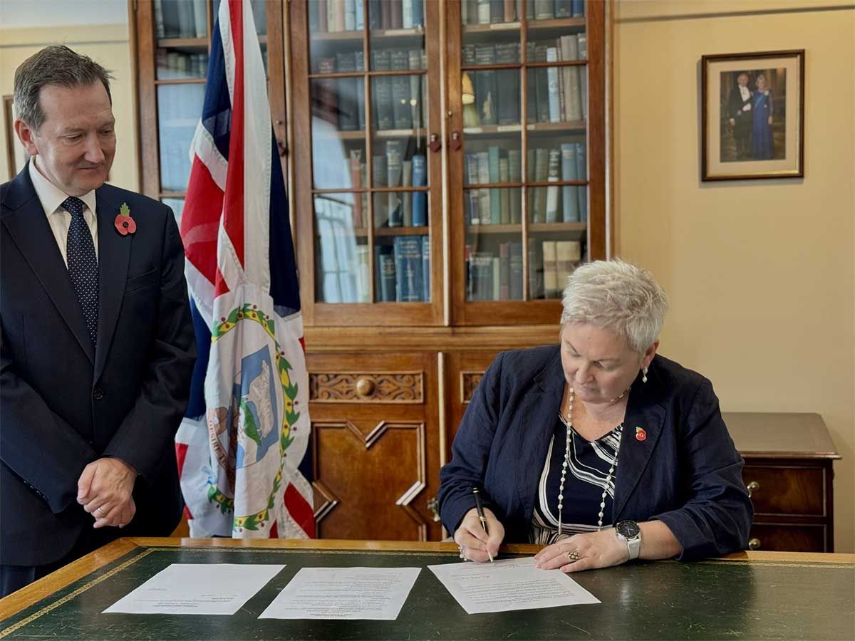 El Gobernador de las Falklands, Colin Martin-Reynolds CMG, cumpliendo con la Constitución de Falklands y en presencia del jerarca electoral, Dra. Andrea Clausen firmó los documentos para la disolución la Asamblea Legislativa y confirmar el l1 de diciembre como fecha de la Elección General.