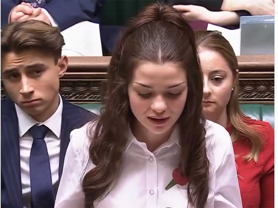 La joven Alexia Davies se dirige a sus pares ‘parlamentarios’ desde el podio tradicional de debate del parlamento británico La importantica de la educación en las Islas Falkland tanto para la formación de sus nuevas generaciones, como también para asegurar el desarrollo de las propias Islas, fue resaltada por una joven estudiante, representando a su país ante el Parlamento de la Juventud del Reino Unido, en la propia augusta Sala donde funciona la Cámara de los Comunes en Westminster, sede del parlamento británico en Londres.