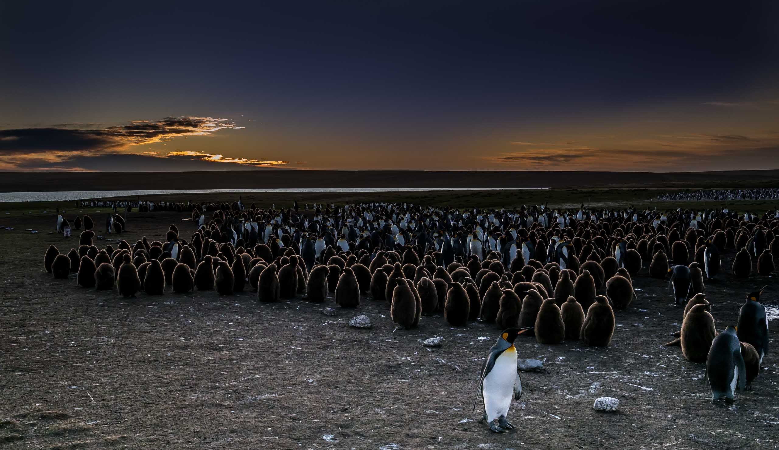 Según el Dr. Cristofari, las colonias en las Falklands con extrañamente pequeñas comparadas con otras. “Cuando se va a las islas del océano Indico sur o el Pacifico sur, se trata de “zonas metropolitanas de Reyes…, la colonia más numerosa que monitoreamos tiene 200.000 pares de ejemplares”