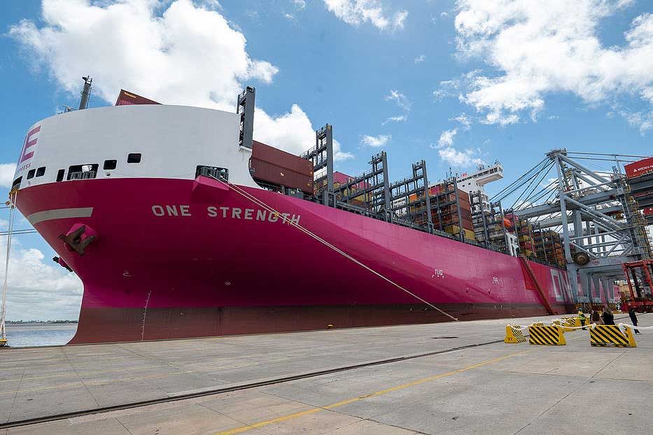 El ONE Strength, un buque de la clase Neo Panamax, con bandera de Singapur y propiedad de la naviera Ocean Network Express Latin America, atracó en la terminal de Katoen Natie durante su viaje inaugural, que comenzó en septiembre. El navío tiene una capacidad aproximada de 14.000 TEU. Un TEU equivale al espacio que ocupa un contenedor intermodal de 20 pies (aproximadamente 6,1 metros de largo, 2,44 metros de ancho y 2,59 metros de alto). Es la medida universal para describir la capacidad de los portacontenedores, puertos y terminales.
