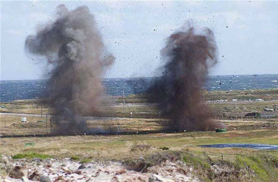 Se estima que las fuerzas argentinas en su retirada plantaron unas 30,000 minas, principalmente antipersonales, aunque también anti blindados Explosiones controladas tuvieron lugar la semana pasada en las proximidades del aeropuerto de la capital de las Islas Falkland, Stanley, tras el descubrimiento de lo que se sospechó y determinó pudieran ser minas anti tanque.
