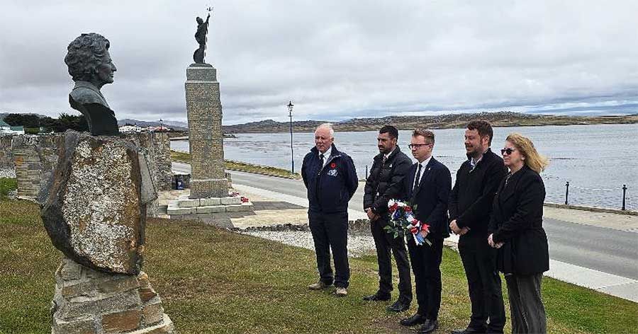 Los miembros de la Asamblea Legislativa (MLAs) Lewis Clifton, Dean Dent, Jack Ford, Stacy Bragger y Cheryl Roberts junto al busto de Margaret Thatcher en Stanley, en la mañana del 10 de enero de 2026 Hoy, 10 de enero, se conmemora el Día de Margaret Thatcher en las Falklands. La fecha recuerda y celebra la visita de cuatro días que realizó la ex primera ministra —victoriosa en la Guerra de las Falklands— a las Islas, iniciada precisamente el 10 de enero de 1983, apenas ocho meses después del fin del conflicto con Argentina.