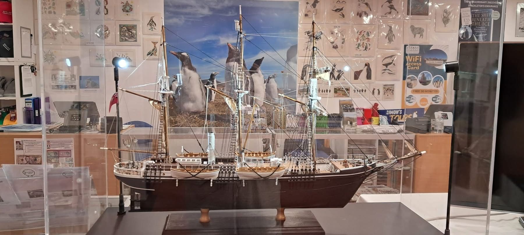 La pieza, una maqueta 1:52 de gran nivel de detalle, fue elaborada en Dnipro, Ucrania, por el ingeniero retirado Vitaliy Vrubel en medio del conflicto armado. El modelo llegó a las islas a bordo del RRS Sir David Attenborough, buque insignia del British Antarctic Survey, tras haber atravesado aguas antárticas en un trayecto que evocó el viaje original de Shackleton.