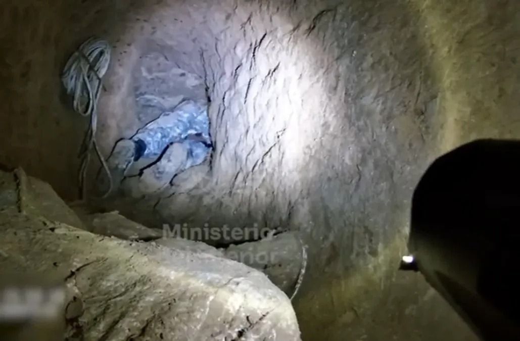Fuentes policiales y judiciales describieron el hallazgo como una construcción destinada a conectar el local con el alcantarillado y, desde allí, aproximarse al objetivo. En el registro difundido del operativo, se observa el ingreso por una abertura en el piso y el avance por un tramo estrecho hacia un sector más amplio.