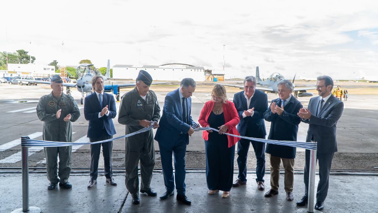 Orsi realizó el corte de cinta y compartió un tramo del listón con Lacalle Pou, en referencia a que la compra fue definida durante la administración anterior. Foto: Ministerio de Defensa del Uruguay El presidente uruguayo Yamandú Orsi y el expresidente Luis Lacalle Pou coincidieron en la Base Aérea N.º 1 (Ruta 101, Canelones) durante la presentación de los primeros aviones A-29 Super Tucano incorporados por la Fuerza Aérea Uruguaya (FAU), en un acto que también incluyó a la ministra de Defensa, Sandra Lazo, y al exministro y actual senador Javier García.