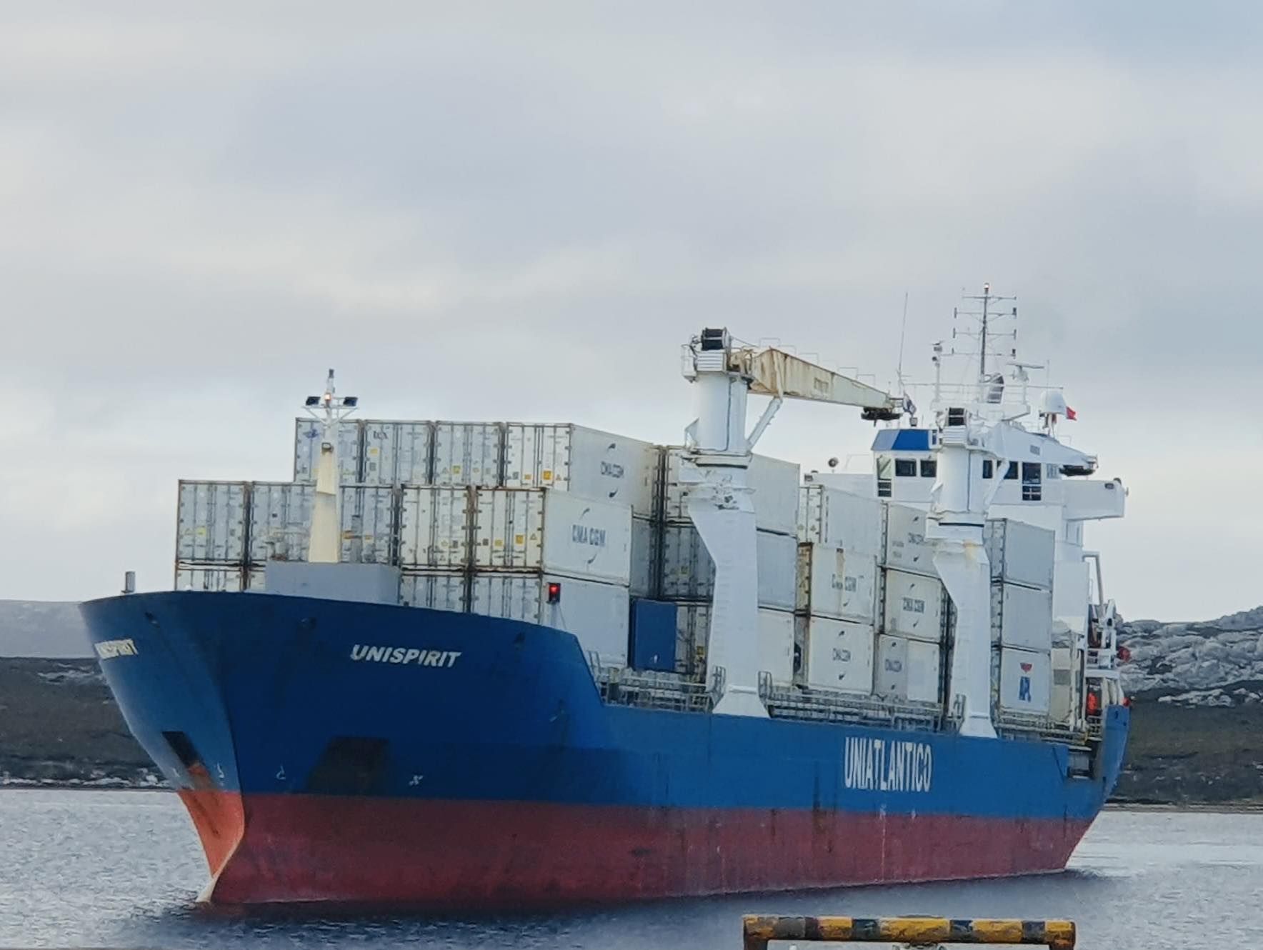 Se trata de mercadería despachada desde el Reino Unido, el denominado V569, y que se viera retrasado pues el único carguero de la naviera SAAS, M/V Unispirit se vio demorado en un astillero de Brasil, donde debió cumplir con la inspección y tareas de mantenimiento exigidas por el seguro para poder seguir siendo declarada en condiciones de navegabilidad por el próximo quinquenio.