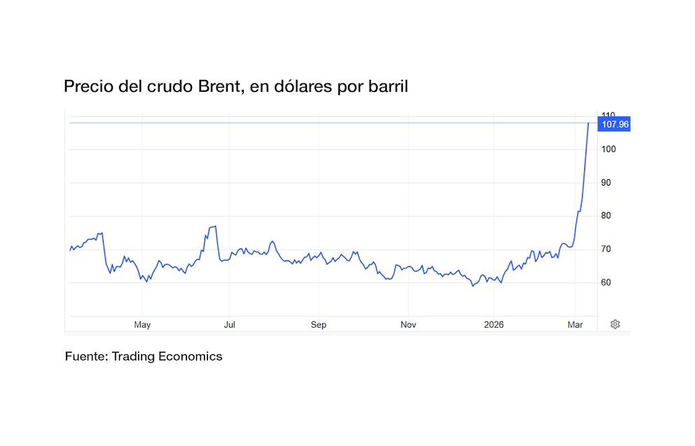 Donald Trump reaccionó al repunte del crudo con un mensaje en Truth Social, en el que dijo que se trataba de “un precio muy pequeño a pagar” por la “seguridad y paz en América y en el mundo.” Los precios del petróleo superaron este domingo los US$ 100 por barril en los mercados de futuros, en una suba que llevó al crudo a su nivel más alto desde 2022, impulsada por la continuidad del conflicto en Medio Oriente, el bloqueo efectivo del estrecho de Ormuz y nuevos recortes de producción en varios productores del Golfo. Reuters informó que el Brent llegó a US$ 111,04 por barril y el West Texas Intermediate (WTI) tocó US$ 111,24 en las primeras operaciones del día. AP situó luego al Brent en US$ 107,97 y al WTI en US$ 106,22, ambos con alzas superiores al 16% respecto del cierre previo.