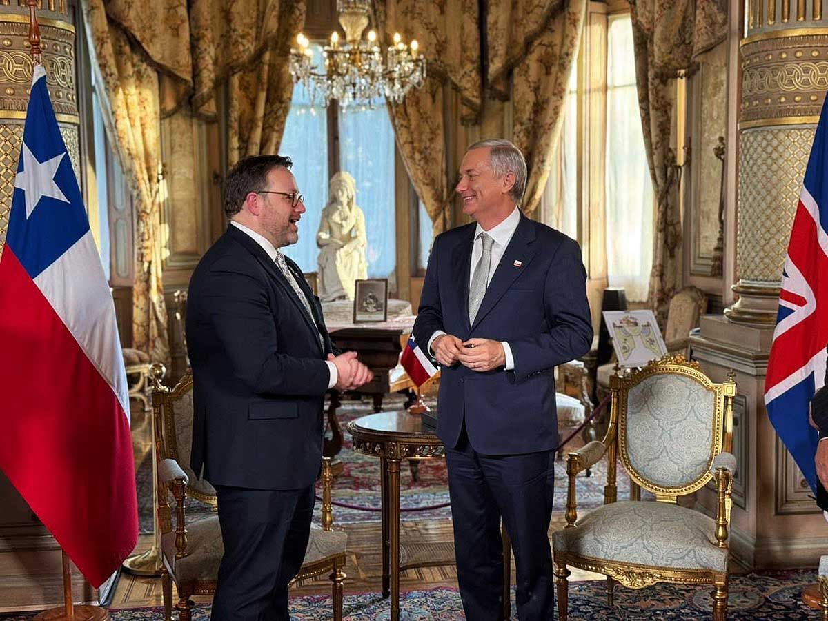 El presidente chileno Kast con el ministro del Foreign Office del Reino Unido para América Latina y el Caribe, Chris Elmore. El Reino Unido reafirmó su intención de profundizar su relación con Chile en áreas como comercio, minerales críticos, energía, construcción naval y cooperación científica, según un comunicado del Foreign Office tras la investidura del presidente José Antonio Kast en Santiago.