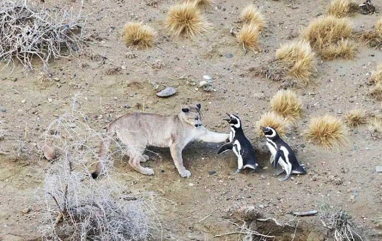 Un grupo de pumas en el Parque Nacional Monte León, en la provincia de Santa Cruz, Argentina, ha incorporado a los pingüinos como parte regular de su dieta, un fenómeno sin precedentes que está siendo estudiado por un equipo científico financiado por National Geographic, según un informe publicado por el diario La Nación.