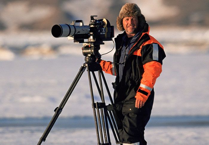 Un encuentro fortuito con Attenborough en 1981 lo llevó a participar en la serie documental Living Planet, filmada en parte en la Antártida. Esa experiencia lo impulsó a adquirir una cámara de cine de 16 mm con la que filmó pingüinos emperador, imágenes que luego vendió a la BBC.